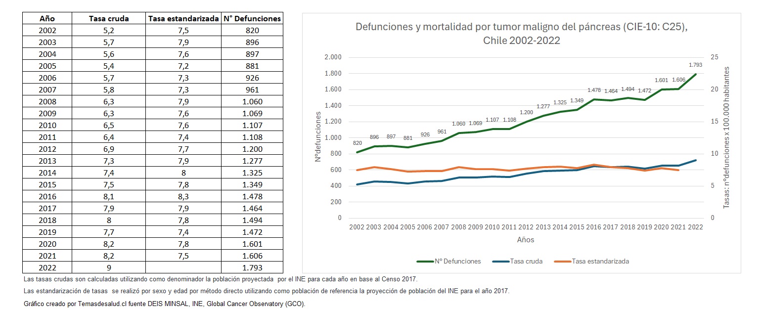 Gráfico creado por Temasdesalud.cl. Fuente: DEIS MINSAL, INE, Global Cancer Observatory (GCO).
