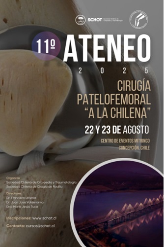 La Sociedad Chilena de Cirugía de Rodilla y Traumatología Deportiva, dependiente de la Sociedad Chilena de Ortopedia y Traumatología (SCHOT), convoca a la decimoprimera versión del Ateneo de Rodilla, que se realizará los días 22 y 23 de agosto de 2025 en el Centro de Eventos Mitrinco, Concepción. Esta edición se centrará en la cirugía patelofemoral con un enfoque práctico y contextualizado a la realidad nacional. Según su comité organizador, el Ateneo es una reunión de traumatólogos orientada a profundizar un tema específico durante dos jornadas intensivas, con discusión de casos, actualización de indicaciones quirúrgicas, revisión de técnicas y “tips” operatorios. La patología patelofemoral, como la luxación recidivante de rótula, exige indicaciones personalizadas y una planificación precisa; por ello el curso abordará la selección de pacientes, los gestos asociados y los resultados esperados. Fiel a la tradición del Ateneo, el cuerpo docente estará compuesto por especialistas nacionales de amplia experiencia y también por cirujanos jóvenes que, desde distintos centros del país, enriquecen el intercambio de prácticas y realidades. La actividad mantendrá su sello académico y de camaradería, con espacios para conversación clínica y redes profesionales. Dirigido a traumatólogos generales y subespecialistas interesados en cirugía de rodilla.Fecha