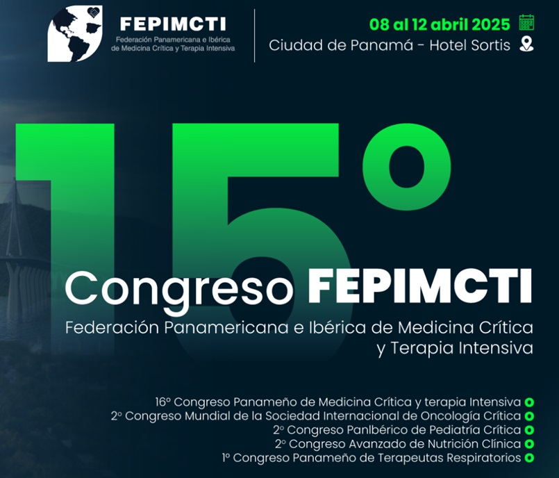 Apreciados colegas y amigos Cordial saludo A través del presente documento les damos la bienvenida en la presentación de nuestro 15º Congreso FEPIMCTI 2025 de la Federación Panamericana a Ibérica de Medicina Crítica y Terapia Intensiva. Somos una organización académica que suma a todos los países de América, además de Portugal y España. Estamos integrados por un total de 25 Sociedades o Asociaciones de Medicina Crítica representantes de cada uno de sus países. Siendo nuestro principal objetivo aumentar el nivel académico y la excelencia en el conocimiento y dominio de los diferentes temas que incluyen el mundo de la medicina crítica. Para esto nos ocupamos de múltiples actividades académicas dentro de cada país y otras organizadas por la Federación hacia el resto de los países miembros. Dentro de este último esta la organización del Congreso bianual de la Federación. Este año 2025 corresponde al Congreso número quinceavo y promete ser muy exitoso desde el punto de vista de participantes, es decir asistentes y profesores. Esperamos más de 2,000 asistentes y más de 100 profesores de prestigio mundial. Además de interesantísimos temas científicos de mucha actualidad. Consideramos que es una valiosa oportunidad para asistir y disfrutar de esta fiesta académica grandiosa además de múltiples actividades sociales relacionadas al Congreso. Esta vez presentaremos 5 Congresos simultáneos: 16º Congreso Panameño de Medicina Crítica y Terapia Intensiva 2º Congreso Mundial de la Sociedad Internacional de Oncología Crítica 2º Congreso Pan-Ibérico de Pediatría Crítica 2º Congreso Avanzado de Nutrición Clínica 1º Congreso de la Asociación Panameña de Terapia Respiratoria. Confiamos que se pueda aprovechar esta valiosa oportunidad para beneficio de todos los asistentes cuyo objetivo final son los pacientes críticos. Y desde ya estamos a su disposición. Bienvenidos !! Dr. Alfredo A. Matos A. FCCM Presidente del 15º Congreso FEPIMCTI 2025Fecha
