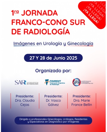 Imágenes en Urología y Ginecología. Directores: Dra. Carolina Chacón, Dra. Daniela Stoisa, Dr. Alberto Marangoni, Dr. Jorge Ocantos. Disertantes Francia: Prof. Isabelle Thomassin y Dra. Patricia Gutiérrez. Temario: Ginecología: Oncología - O RADS - Endometriosis - Piso pelviano. Urología: RMmp de próstata (Scores - IA - HPB - Embolización). Oncología Renal y vesical. Testículo y vía seminal. Traducción francés, castellano, francés. Se entrega certificado de participación. Modalidad presencial, cupos limitados.Fecha