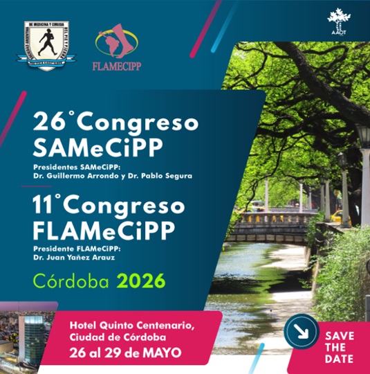 El 26º Congreso de la Sociedad Argentina de Medicina y Cirugía del Pie y la Pierna (SAMeCiPP) y el 11º Congreso FLAMeCiPP se desarrollarán del 26 al 29 de mayo de 2026 en el Hotel Quinto Centenario de Córdoba, Argentina. Se trata de un congreso científico internacional que reúne a especialistas argentinos y extranjeros en torno a los principales tópicos de la subespecialidad de cirugía y medicina de pierna, tobillo y pie. En esta edición coinciden ambas reuniones, potenciando la participación latinoamericana y el intercambio académico de alto nivel.Fecha