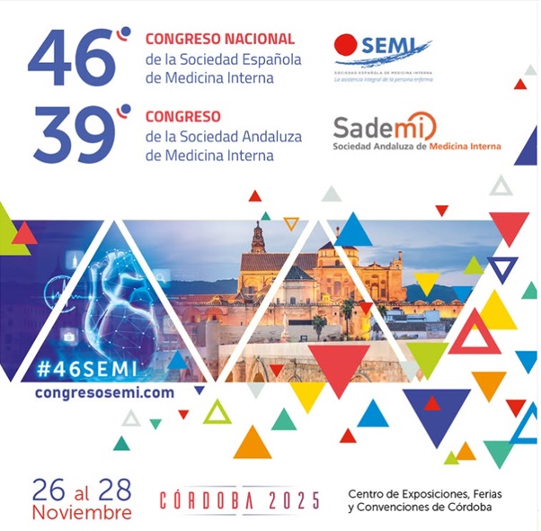 El 46° Congreso Nacional de la Sociedad Española de Medicina Interna (SEMI) y el 39° Congreso de la Sociedad Andaluza de Medicina Interna (Sademi) se celebrarán en Córdoba del 26 al 28 de noviembre de 2025, en el Centro de Exposiciones, Ferias y Convenciones de Córdoba. Este evento reúne a internistas de toda España y Andalucía en torno a mesas redondas, talleres, debates y sesiones generales sobre temáticas relevantes como insuficiencia cardíaca, enfermedades infecciosas, bioética, diabetes, obesidad, riesgo vascular, EPOC, enfermedades minoritarias y avances en medicina personalizada. El programa incluye encuentros con expertos, formación para residentes, sesiones sobre IA, ecografía clínica, cronicidad, urgencias y más. El Congreso cuenta con un comité organizador y científico multidisciplinar, ponentes nacionales e internacionales, y busca fortalecer la actualización y el intercambio de conocimientos en medicina interna. Más información en: https://congresosemi.com/semi2025Fecha