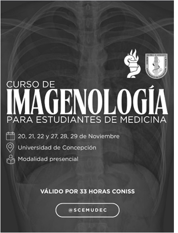 Curso intensivo y presencial orientado a estudiantes de Medicina que necesitan fortalecer su competencia diagnóstica en Imagenología a través de fundamentos, criterios de solicitud, aproximación clínica e interpretación básica de los principales estudios. La actividad se realiza en la Universidad de Concepción y se distribuye en dos bloques de tres jornadas cada uno (20, 21 y 22 de noviembre; 27, 28 y 29 de noviembre de 2025). El plan formativo integra siete módulos: (1) Introducción a la Imagenología con generalidades de rayos X, ecografía, tomografía computada y resonancia magnética; (2) Tórax adulto, considerando radiografía normal y patológica, punción pleural, ecografía torácica y tomografía de tórax con diagnósticos diferenciales; (3) Abdomen y pelvis adulto, cubriendo radiografía normal y alterada, tomografía de abdomen y pelvis, resonancia magnética, ecografía abdominal y evaluación de vías urinarias; (4) Musculoesquelético y neurológico, con estudio de fracturas, columna vertebral, partes blandas, tomografía en trauma craneoencefálico y rol de la imagen en accidente cerebrovascular; (5) Radiología en pediatría, incluyendo tórax pediátrico, ingestión de cuerpo extraño, abdomen agudo, fracturas en niños, trauma encefalocraneano y oncología pediátrica; (6) Ginecología y obstetricia, con ecografía ginecológica y mamografía/ecografía mamaria; y (7) Radiología intervencional y otros procedimientos, que aborda angiografía, manejo de abscesos con drenajes y nociones de medicina nuclear. El curso es válido por 33 horas (CONISS) y contempla aranceles diferenciados por preventa y valor general según pertenencia a SCEMUDEC, estudiantes de Medicina UdeC u otras carreras y externos. Las inscripciones se habilitan desde el 20 de octubre a través del enlace en la biografía del curso.Fecha