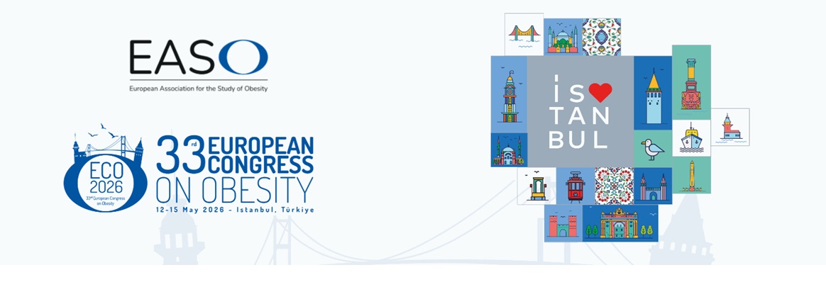 ECO 2026 – 33rd European Congress on Obesity será un congreso híbrido en Estambul del 12 al 15 de mayo de 2026. Reúne a más de 4.000 delegados de 100+ países para presentar y debatir los últimos avances sobre obesidad: ciencia básica, salud pública, nutrición, diabetes y manejo clínico. El programa incluye plenarias, topic sessions, simposios aceptados, talleres y sesiones de abstracts. Información y comités: https://eco2026.org/. EASO Trustees (Directiva): Volkan Yumuk (Presidente, Türkiye); Jennifer Lyn Baker (President-Elect, Dinamarca); Grace O’Malley (Secretaria, Irlanda); Paolo Sbraccia (Tesorero, Italia); Tryggvi Helgason (VP Región Norte, Islandia); Lubomira Fabryova (VP Región Media, Eslovaquia); Luca Busetto (VP Región Sur, Italia). Ex-officio: Euan Woodward (Executive Director, UK); Dror Dicker (Co-Chair COMs WG, Israel); Emma Boyland (Co-Chair Prevention & Public Health WG, UK); Janas Harrington (Co-Chair Prevention & Public Health WG, Irlanda); Maria Hassapidou (Co-Chair Nutrition WG, Grecia); Teodora Handjieva-Darlenska (Co-Chair Nutrition WG, Bulgaria); Gema Frühbeck (Co-Chair Scientific Advisory Board, España); Gijs Goossens (Co-Chair Scientific Advisory Board, Luxemburgo). Registro (tarifas indicativas): Miembro EASO €550/€600/€650; No Miembro €625/€700/€750; Profesionales afines €425/€500/€550; Estudiante €175/€200/€250; Expositor €425/€500/€600 (Early/Standard/Onsite).Fecha