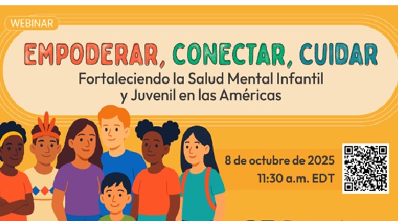 En el marco del Día Mundial de la Salud Mental 2025 y de la 1ª Semana Interamericana de la Salud Mental, la Organización Panamericana de la Salud/OPS (PAHO/WHO) convoca al webinar “Empoderar, Conectar, Cuidar: Fortaleciendo la Salud Mental Infantil y Juvenil en las Américas”. La sesión se realizará el miércoles 8 de octubre de 2025 a las 11:30 a.m. (EDT, hora de Washington D. C., Estados Unidos), en modalidad online y con interpretación simultánea en español, inglés y portugués. El encuentro busca visibilizar la salud mental de niños, niñas, adolescentes y jóvenes como prioridad regional y derecho humano, y presentar acciones concretas para reforzar la respuesta de los servicios de salud. Se lanzará el curso virtual de la OPS “Mejorando la salud mental de niños, niñas y adolescentes en la atención primaria”, se ofrecerá un panorama regional sobre el estado de los servicios y una conversación con jóvenes del grupo Juventud por la Salud sobre promoción y prevención. Actividad gratuita con registro previo vía Zoom.Fecha