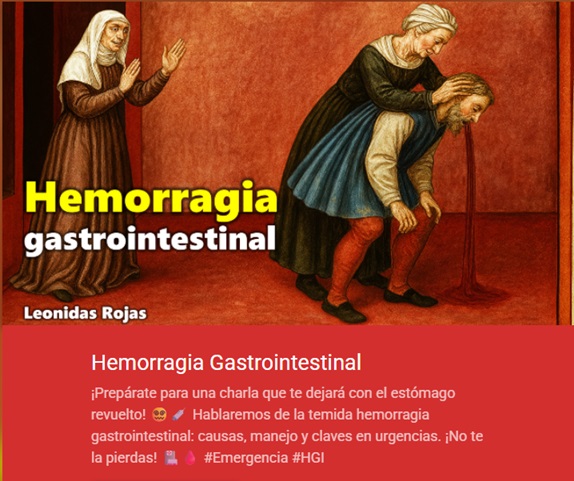 ¡Prepárate para una charla que te dejará con el estómago revuelto! Hablaremos de la temida hemorragia gastrointestinal: causas, manejo y claves en urgencias. Reunión virtual dirigida a profesionales y estudiantes del área de la salud interesados en emergencias digestivas. ¡No te la pierdas! #Emergencia #HGIFecha
