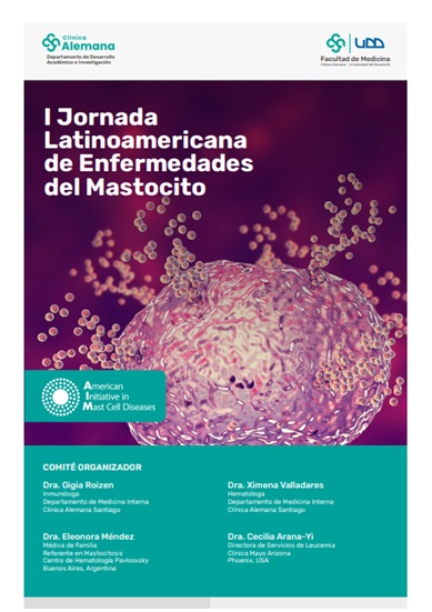 La I Jornada Latinoamericana de Enfermedades del Mastocito se realizará el 10 de octubre de 2025 en el Auditorio de la Clínica Alemana La Dehesa, Santiago, Chile. El evento busca aumentar la conciencia y el conocimiento sobre las enfermedades mastocitarias en Latinoamérica, fomentar el trabajo colaborativo entre profesionales de diferentes países, impulsar un enfoque multidisciplinario en el manejo de estas patologías y promover la creación de un registro latinoamericano de pacientes para fortalecer la investigación y mejorar los tratamientos. El programa incluye conferencias magistrales, mesas redondas, casos clínicos, y experiencias internacionales de expertos de renombre mundial.Fecha