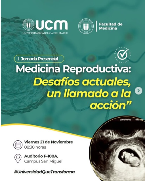 La Facultad de Medicina de la Universidad Católica del Maule, a través de su área de Ginecología y Obstetricia, convoca a la I Jornada Presencial de Medicina Reproductiva denominada “Desafíos actuales, un llamado a la acción”, a realizarse el viernes 21 de noviembre de 2025 en el Auditorio F-100A del Campus San Miguel (Talca). La actividad busca actualizar a médicos generales, gineco-obstetras, becados, matronas y estudiantes de salud en los cambios demográficos que enfrenta Chile por la baja natalidad, el papel de la edad materna avanzada, la preservación de la fertilidad en niñas y mujeres, el impacto del sobrepeso y obesidad sobre los resultados reproductivos y el uso de modelos experimentales para comprender el envejecimiento ovárico y la calidad ovocitaria. Se presentarán lineamientos clínicos prácticos, experiencias nacionales y una reflexión sobre la necesidad de organizar la atención reproductiva en red, incluyendo la derivación oportuna y el rol de los equipos universitarios. La jornada contará con inscripción de bajo costo y cupos limitados, y es una oportunidad concreta para docentes, estudiantes y profesionales del Maule y de otras regiones que quieran fortalecer su competencia en fertilidad y medicina reproductiva.Fecha