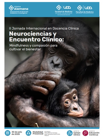 La II Jornada Internacional en Docencia Clínica, titulada 'Neurociencias y Encuentro Clínico: Mindfulness y compasión para cultivar el bienestar', busca promover el autocuidado, la regulación emocional y el fortalecimiento del vínculo terapéutico a través de estrategias basadas en mindfulness y compasión. El evento incluirá exposiciones teóricas y experiencias prácticas para integrar herramientas de bienestar en la vida personal y profesional de los equipos de salud.Fecha