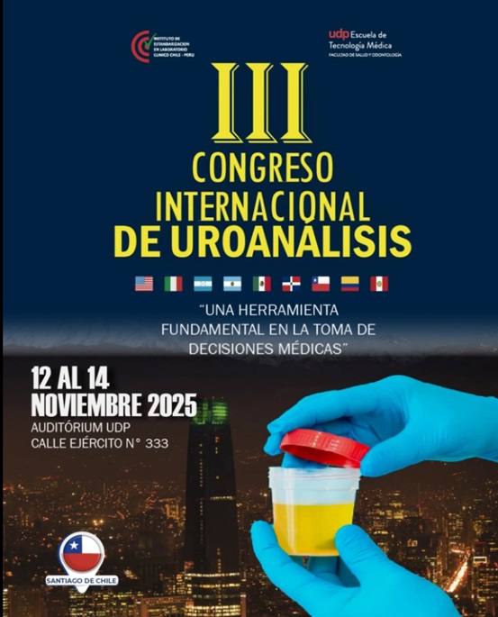 El III Congreso Internacional de Uroanálisis se realizará del 12 al 14 de noviembre de 2025 en el Auditorio de la Facultad de Ciencias Sociales e Historia de la Universidad Diego Portales (Calle Ejército Nº 333, Nivel -1), en Santiago de Chile. Este encuentro —organizado por la Escuela de Tecnología Médica UDP y el Instituto de Estandarización en Laboratorio Clínico Chile-Perú— convoca a referentes de América y Europa para actualizar buenas prácticas, estandarizar metodologías y fortalecer la colaboración entre clínicos, tecnólogos médicos y la industria diagnóstica. Los ejes temáticos abarcan el ámbito clínico (impacto del examen de orina completa en urgencia y práctica diaria), el proceso preanalítico (variables que afectan resultados), el proceso analítico (metodologías validadas y verificación) y el postanalítico (comunicación efectiva con el equipo clínico). El programa integra conferencias, workshops y una expo de la industria; entre los invitados destacan el Dr. Giovanni Battista Fogazzi (Italia) y el Dr. Juan Carlos Vélez (Estados Unidos), además de un robusto lineup latinoamericano. La sede cuenta con espacios amplios y accesibles, y alojará stands de empresas del rubro diagnóstico. Se espera una audiencia multidisciplinaria interesada en mejorar la prevención, el diagnóstico y el tratamiento de patologías urológicas y renales mediante un uroanálisis de alta calidad.Fecha