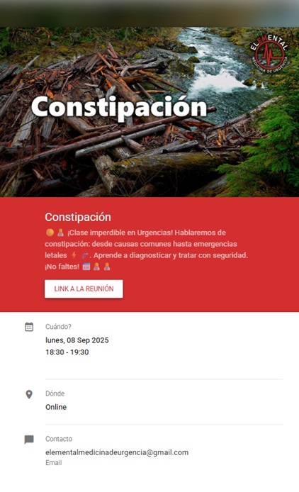 Jornada dedicada a la actualización clínica sobre constipación en población adulta y pediátrica: fisiopatología, evaluación diagnóstica, criterios de alarma, abordajes terapéuticos escalonados, cambios de estilo de vida, manejo farmacológico y consideraciones en patologías asociadas. Actividad orientada a médicos, nutricionistas, kinesiólogos y profesionales afines.Fecha