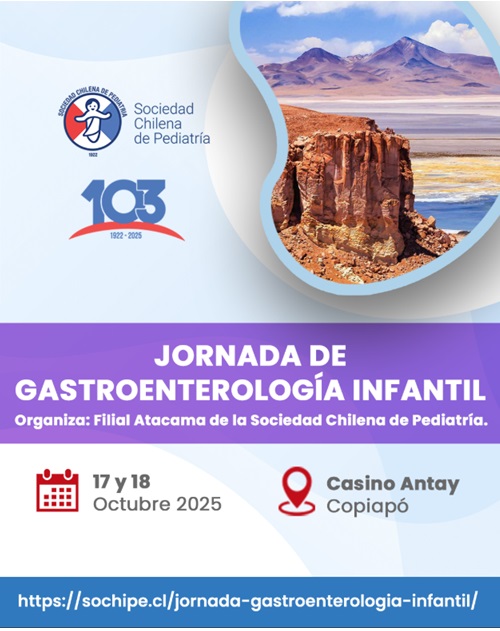 La Jornada de Gastroenterología Infantil se realizará el 17 y 18 de octubre de 2025 en el Casino Antay, Copiapó, organizada por la filial Atacama de la Sociedad Chilena de Pediatría. El programa del día viernes considera inscripciones, bienvenida e inauguración, y una secuencia de temas de alta prevalencia en la práctica pediátrica: alergia a proteína de leche de vaca con énfasis en diagnóstico, manejo nutricional y discusión sobre fórmulas aminoacídicas; novedades en alimentación complementaria y dietas restrictivas durante los primeros dos años; trastornos de alimentación y deglución; patologías relacionadas con el gluten; enfoque preventivo del hígado graso asociado a disfunción metabólica en pediatría; meteorismo y distensión abdominal; evidencia actual del uso de probióticos; diarrea crónica; constipación crónica funcional y pertinaz; manejo de intestino corto e insuficiencia intestinal, y trastornos gastrointestinales en el espectro autista. El sábado aborda disfagia más allá del reflujo, uso y abuso de inhibidores de bomba de protones, urgencias digestivas endoscópicas (hemorragia alta y baja, ingesta de cáusticos y cuerpos extraños), hipertransaminasemia, colestasis del primer trimestre, falla hepática aguda y pancreatitis aguda. Exponen especialistas con trayectoria clínica y docente a nivel nacional. La jornada está orientada a pediatras, médicos generales, nutricionistas, fonoaudiólogos y equipos de salud infantil.Fecha