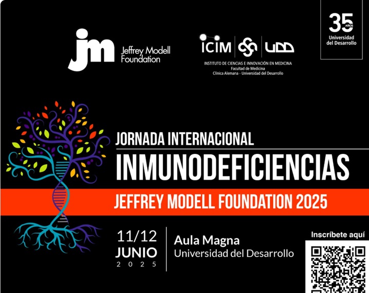 Jeffrey Modell Foundation ICIM – Instituto de Ciencias e Innovación en Medicina Facultad de Medicina, Clínica Alemana – Universidad del Desarrollo 35 años Universidad del Desarrollo JORNADA INTERNACIONAL INMUNODEFICIENCIAS Jeffrey Modell Foundation 2025 11 / 12 JUNIO 2025 Aula Magna Universidad del DesarrolloFecha