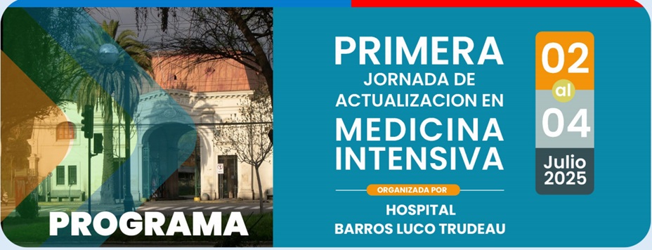 La Primera Jornada de Actualización en Medicina Intensiva es organizada por el Hospital Barros Luco Trudeau. El evento se desarrollará del 2 al 4 de julio de 2025 e incluirá los siguientes módulos y actividades: MIÉRCOLES 02 JULIO 2025 Módulo I Hemodinamia y Sepsis 08:30 - 08:50 Monitoreo Hemodinámico Funcional (Dr. Juan Pablo Valdivia) 08:50 - 09:10 Fluidoterapia y Drogas vasoactivas (Dr. Felipe González) 09:10 - 09:30 Reanimación del Shock Séptico (Dr. Daniel Skorka) 09:30 - 09:50 Cuidados de enfermería en el paciente inestable (EU. Gonzalo Pradenas) 09:50 - 10:00 Discusión y preguntas ... (continúa el programa completo como en el prompt) ... Para mayor información consulta el [programa oficial] (https://x.com/HBarrosLuco/status/1930721801736495581).Fecha