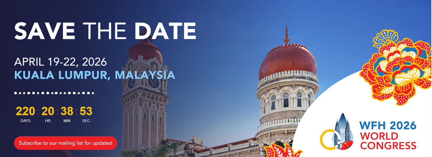 El WFH 2026 World Congress se realizará del 19 al 22 de abril de 2026 en Kuala Lumpur, Malasia. Organizado por la World Federation of Hemophilia (WFH) y con la Hemophilia Society of Malaysia como anfitriona, reunirá profesionales de la salud y personas con trastornos de sangrado (PWBD). Más de 80 horas de educación continuada incluyen plenarias, simposios, paneles, talleres y sesiones interactivas para los ejes Médico y PWBD, y seis pistas profesionales: Enfermería, Odontología, Laboratorio, Psicosocial, Musculoesquelético (MSK) y Mujeres y Niñas con Trastornos de Sangrado (WGBD).Fecha