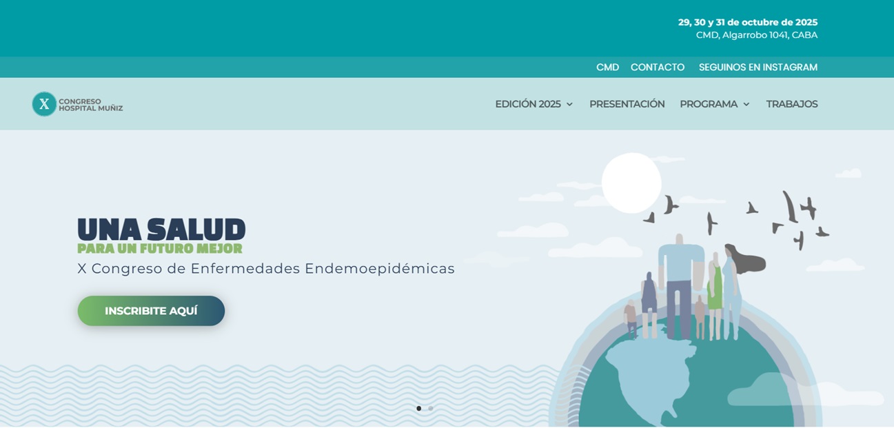 El Hospital de Infecciosas Francisco J. Muñiz convoca al X Congreso de Enfermedades Endemoepidémicas, a realizarse los días 29, 30 y 31 de octubre de 2025 en el Centro Metropolitano de Diseño (CMD), Algarrobo 1041, Ciudad Autónoma de Buenos Aires. Bajo el lema «Una salud para un futuro mejor», el encuentro adopta el enfoque Una Sola Salud para integrar salud humana, animal y ambiental. El programa reúne conferencias plenarias, miniconferencias, mesas redondas, sesiones interactivas, comunicaciones orales y pósters con referentes nacionales y regionales. Se abordarán temas como dengue y otras arbovirosis, resistencia antimicrobiana, zoonosis emergentes, infecciones respiratorias, bronquiectasias, infecciones perinatales, infecciones de transmisión sexual, tuberculosis, salud del viajero y aplicaciones de inteligencia artificial en salud. Actividad no arancelada, con invitación a colaborar voluntariamente con la Cooperadora del Hospital. Declarado de interés por la Facultad de Medicina de la UBA y con amplio apoyo institucional.Fecha