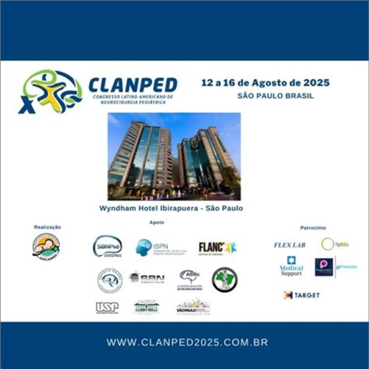 El X Congreso Latinoamericano de Neurocirugía Pediátrica (CLANPED 2025) se celebrará del 12 al 16 de agosto de 2025 en São Paulo, Brasil, en el Wyndham Hotel Ibirapuera. Incluye dos cursos pre-congreso, el III Simposio Latinoamericano de Instrumentación y Enfermería Neuroquirúrgica y el Simposio de Ligas Académicas Médicas. El evento ofrecerá conferencias, talleres y sesiones científicas en temas como oncología, neurocirugía funcional, nervios periféricos, trauma, vascular, radiocirugía, endovascular, columna, oncología, base de cráneo y práctica profesional. Se contará con la presencia de reconocidos especialistas internacionales y latinoamericanos, promoviendo la actualización y el intercambio de conocimientos en neurocirugía pediátrica. Lugar: Wyndham São Paulo Ibirapuera, Av. Ibirapuera, 2927, São Paulo, Brasil. Página oficial: https://clanped2025.com.br/ Cursos pre-congreso: 12 y 13 de agosto. Congreso principal: 14 al 16 de agosto de 2025. Costos y programa detallado: consultar web oficial.Fecha