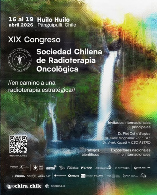 El XIX Congreso de la Sociedad Chilena de Radioterapia Oncológica se realizará entre el 16 y 19 de abril de 2026 en Huilo Huilo, Panguipulli, Chile. El encuentro reunirá a médicos oncólogos radioterapeutas, tecnólogos médicos, físicos médicos y otros profesionales vinculados a la radioterapia oncológica, con participación de especialistas nacionales e internacionales. El programa académico considera sesiones sobre formación y empleabilidad, SBRT en cáncer oligometastásico, cáncer de pulmón, próstata, mama, esófago y sistema nervioso central, además de medicina nuclear, braquiterapia, radioterapia guiada por superficie, inteligencia artificial, planificación, control de calidad y presentaciones de la industria. También contempla trabajos de investigación, actividades sociales y espacios de networking profesional. Entre los invitados destacados figuran Dr. Piet Ost (Bélgica), Dr. Drew Moghanaki (EE.UU.) y Dr. Vivek Kavadi (CEO ASTRO).Fecha