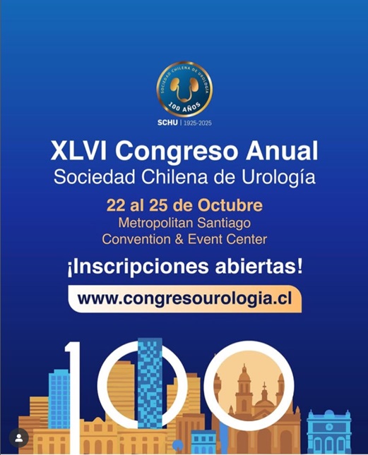 El XLVI Congreso Anual de la Sociedad Chilena de Urología se realizará del 22 al 25 de octubre de 2025 en el Metropolitan Santiago Convention & Event Center. El congreso celebra los 100 años de la Sociedad Chilena de Urología, reuniendo a destacados especialistas nacionales e internacionales. El programa incluye simposios, cursos pre-congreso, talleres, sesiones de posters, mesas redondas y plenarias sobre las últimas tendencias e innovaciones en urología, cirugía robótica, uro-oncología, salud masculina, pediátrica y más. Habrá sesiones especiales para residentes y enfermería, además de actividades sociales de networking y la presentación del Manual de Urología 2025.Fecha