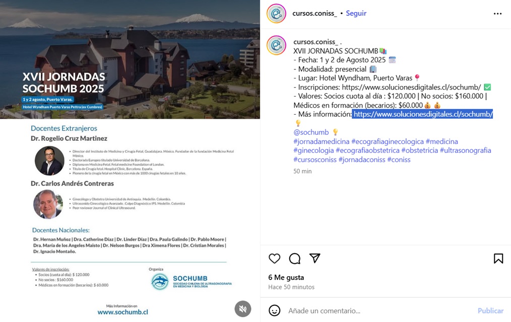 La XVII Jornadas SOCHUMB se realizará el 1 y 2 de agosto de 2025 en el Hotel Wyndham Puerto Varas (ex Cumbres), con modalidad presencial. Este encuentro científico-técnico reunirá a destacados expertos internacionales y nacionales en ultrasonografía médica. El programa incluye módulos de ecografía obstétrica y ginecológica, avances en diagnóstico prenatal, inteligencia artificial, y más. Habrá actividades especializadas, espacios de interacción y acceso a reserva de hotel con tarifa preferencial para asistentes.Fecha