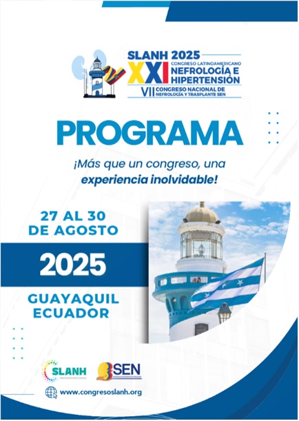 4 días en Guayaquil, Ecuador. Modalidad presencial en EXPOPLAZA Centro de Convenciones de Guayaquil. Inscripción (Early Bird hasta 1 de julio 2025): Médicos Miembros SLANH y SEN: 200 USD Médicos No Miembros: 300 USD Residentes y Estudiantes: 120 USD Otros profesionales: 150 USD Ver programa y tarifas actualizadas en www.congresoslanh.org Comité organizador internacional: Dr. Jorge Rico Fontalvo (Presidente SLANH), Dr. Rodrigo Daza (Tesorero SLANH), Dra. Vanessa Villavicencio (Secretaria General SLANH), Dr. Vicente Sanchez Polo, Dr. Guillermo Alvarez, Dr. Carlos Marquez, Dr. Fabián Ortiz. Comité local: Dr. Darío Jimenez (Presidente), Dr. Eduardo Quinto, Dr. Omar Seminario, Dr. Jorge Moscoso, Dra. Alexandra Palacios, Dr. Juan Santacruz, Dra. Evelyn Moreira. Comité científico: Dr. Gustavo Aroca (Presidente), Dr. Washington Osorio, Dr. Juan Diego Montejo, Dr. Ramón García Trabanino, Dra. Carolina Vázquez, Dr. Alejandro García, Dra. Daniela Ponce. Temas principales: trabajos de investigación, hipertensión, trasplante renal, redes profesionales internacionales. Dirección: Av. de las Américas 406, Guayaquil 090513. Más info: www.congresoslanh.orgFecha
