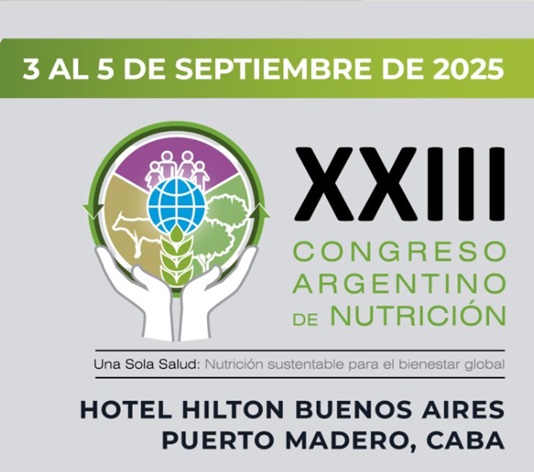 El XXIII Congreso Argentino de Nutrición, organizado por la Sociedad Argentina de Nutrición, se celebrará del 3 al 5 de septiembre de 2025 en el Hotel Hilton Buenos Aires, Puerto Madero, CABA. El congreso abordará los desafíos actuales en nutrición, desde la prevención hasta el tratamiento de enfermedades relacionadas, innovación en tecnología alimentaria, seguridad alimentaria y prevención de enfermedades crónicas. Participarán profesionales, académicos, autoridades y expertos nacionales e internacionales, con múltiples espacios para networking, presentación de investigaciones y debates científicos de alto nivel.Fecha