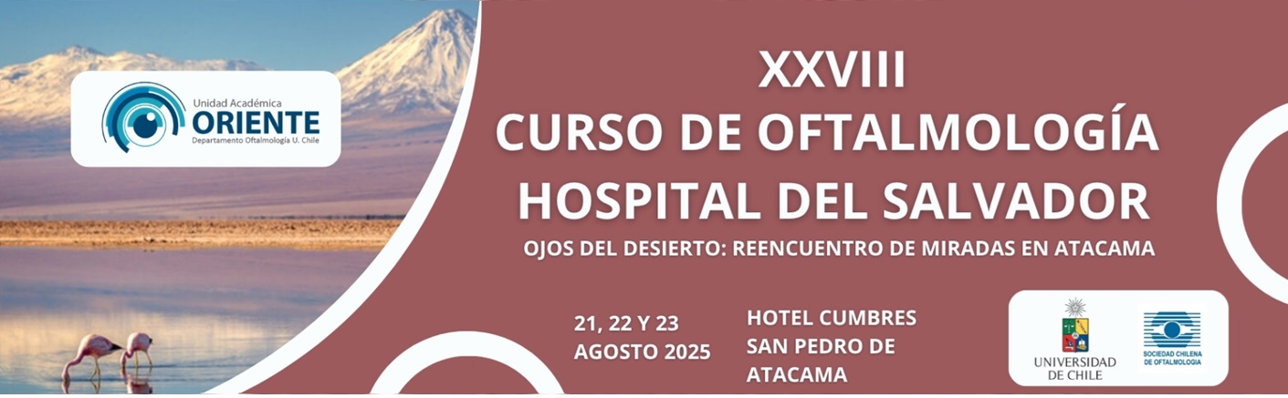 El XXVIII Curso de Oftalmología del Hospital del Salvador regresa con el lema Ojos del desierto: reencuentro de miradas en Atacama. El encuentro se realizará del 21 al 23 de agosto de 2025 en el Hotel Cumbres de San Pedro de Atacama y reúne a la comunidad oftalmológica nacional con una invitada internacional de primer nivel, la Dra. Enrica Sarnicola (Italia), referente mundial en córnea y superficie ocular. El programa integra módulos de Oftalmopediatría y Estrabismo, Órbita y Oculoplástica, Retina, Úvea, Córnea y Polo Anterior, Glaucoma, Trauma Ocular y Catarata/Cirugía Refractiva, además de actividades sociales que favorecen el networking (coctel de bienvenida al atardecer en el desierto, paseo a Géiseres del Tatio y tour astronómico). Se promueve la educación continua con un enfoque práctico: casos clínicos guiados, revisión de técnicas quirúrgicas, tips de manejo y mesa de expertos. El curso es organizado por la Unidad Académica Oriente del Departamento de Oftalmología de la Universidad de Chile y el Hospital del Salvador, con el apoyo de la Sociedad Chilena de Oftalmología.Fecha