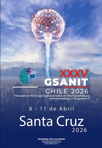 El XXXV GSANIT Chile 2026, Encuentro del Grupo Sudamericano de Neurorradiología, Intervencionista y Terapéutica, se realizará entre el 8 y el 11 de abril de 2026 en Santa Cruz, Chile. El programa considera módulos sobre aneurismas, malformaciones arterio-venosas, fístulas durales, stroke y misceláneos, además de casos, conferencias de industria y presentaciones de profesores invitados internacionales.Fecha
