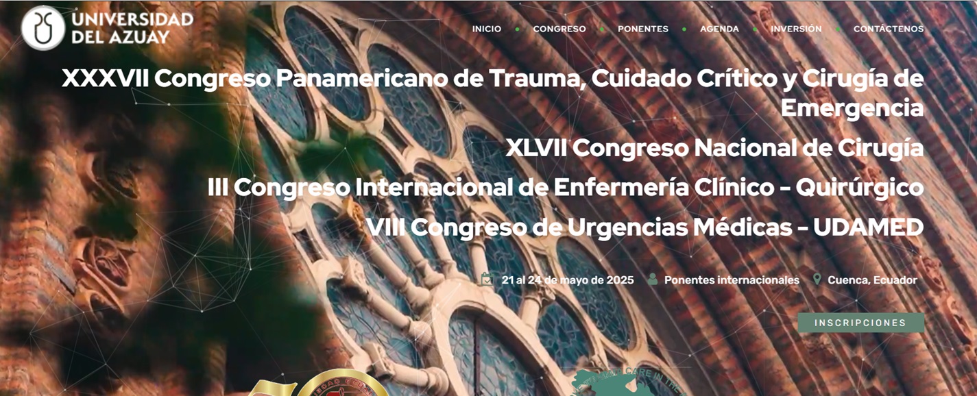 La Sociedad Panamericana de Trauma, junto a la Sociedad Ecuatoriana de Cirugía, tiene el honor de invitarle a participar en la reunión anual que se llevará a cabo en Ecuador, en la ciudad de Cuenca, del 21 al 24 de mayo. Este evento será particularmente especial, ya que celebraremos los 50 años de la Sociedad Ecuatoriana de Cirugía. Se desarrollarán temas de actualidad, cirugía general y sus especialidades, trauma, emergencias y cuidado intensivo quirúrgico, junto a destacados profesionales de talla mundial, en un entorno académico de alto nivel y con un formato dinámico que fomenta la camaradería.Fecha